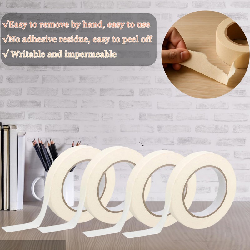 - 【Premium Paper-Based Material】Our thin masking tape uses premium paper-based material with natural rubber adhesive, ensuring clean removal from painted walls, glass, or wallpaper. Acid-free and non-toxic, white masking tape meets household safety standards.
