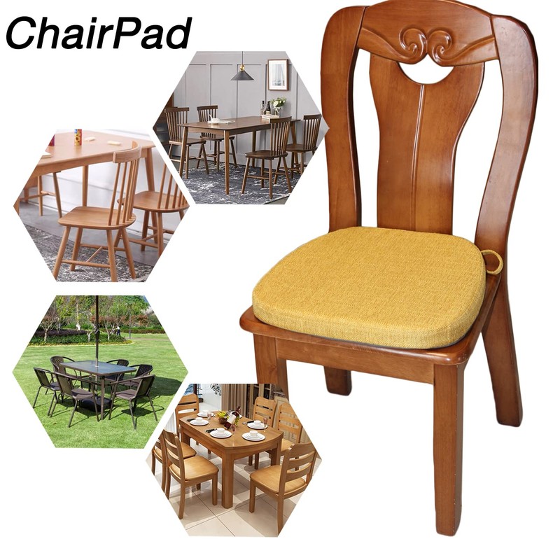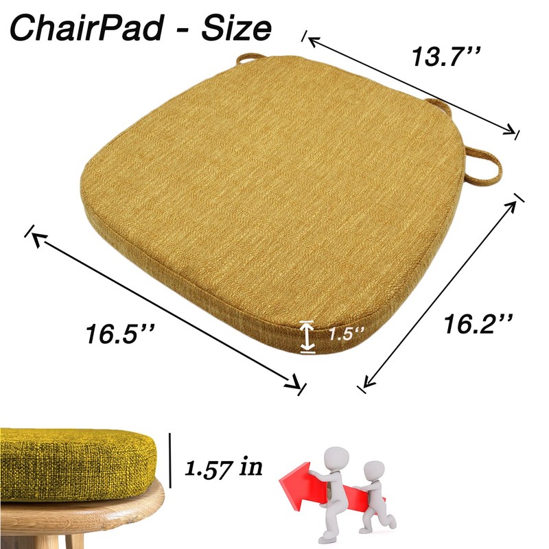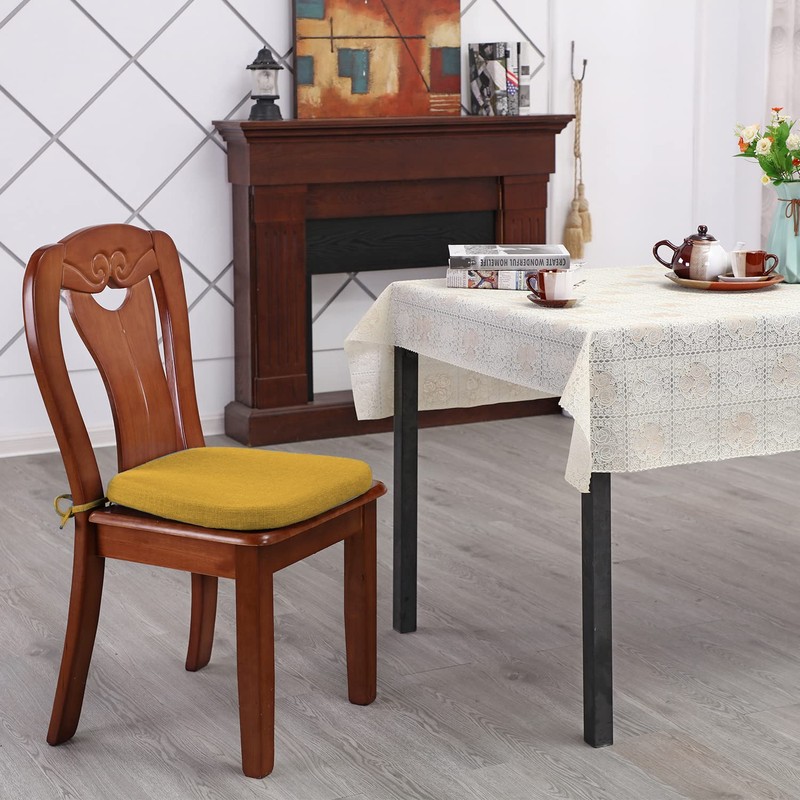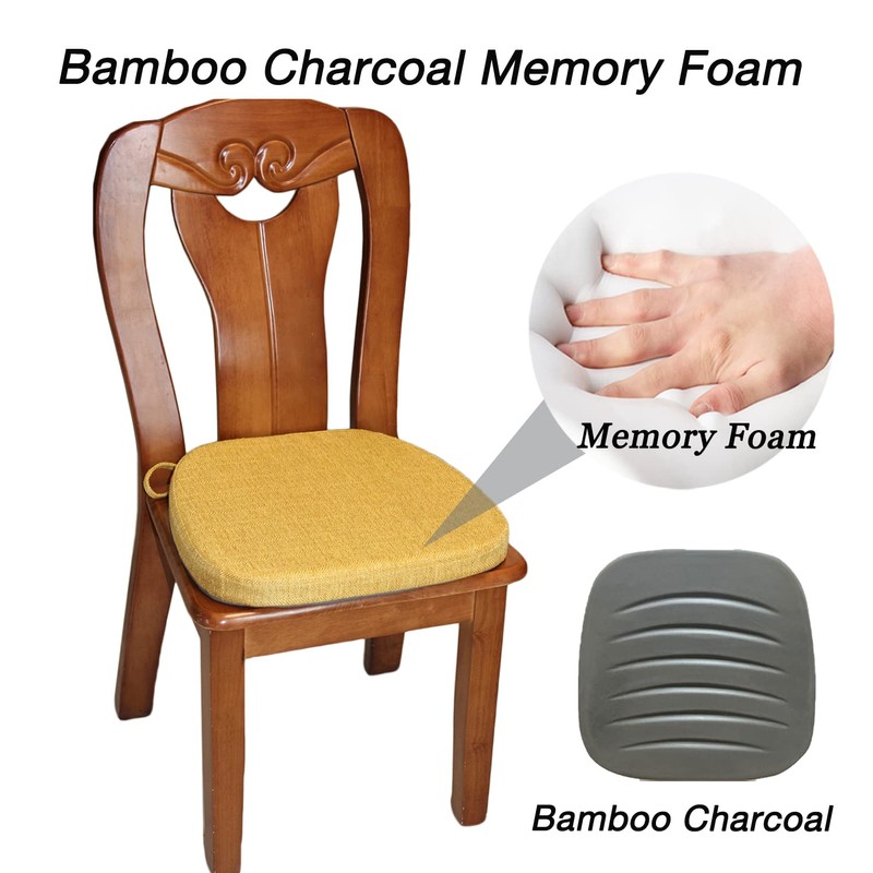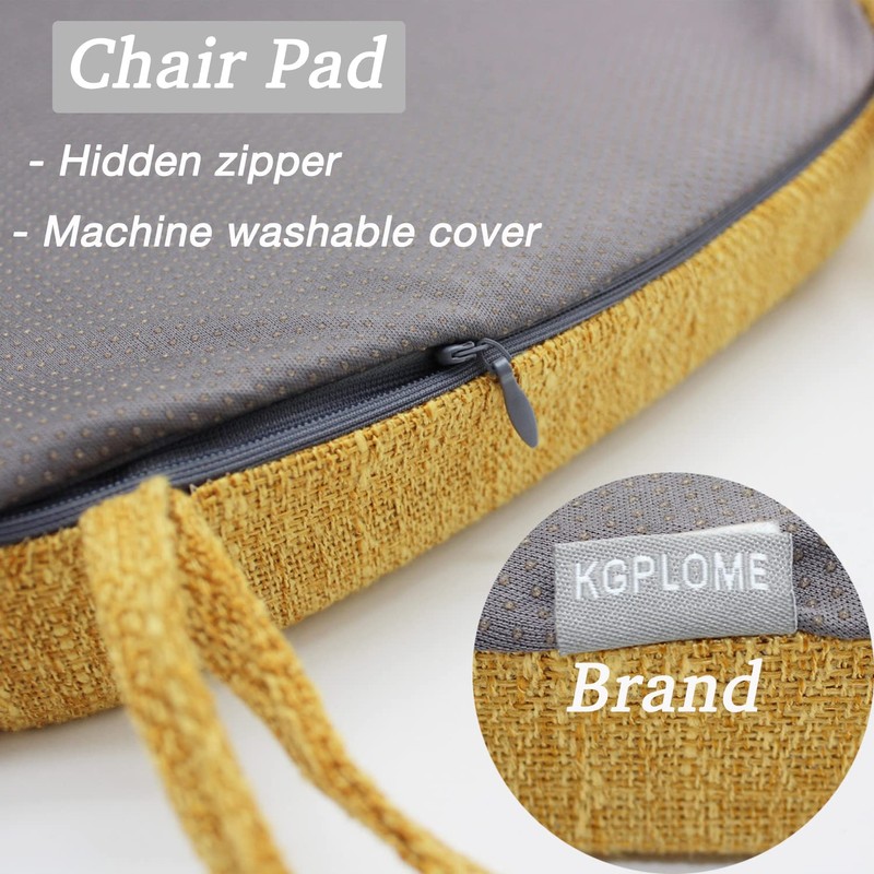 KGPLOME Chair Pads for Dining Chairs - Memory Foam Non Slip Kitchen Chair Cushion and Seat Cushion with Machine Washable Cover [16.5 x 16.2 Inches] - Yellow
