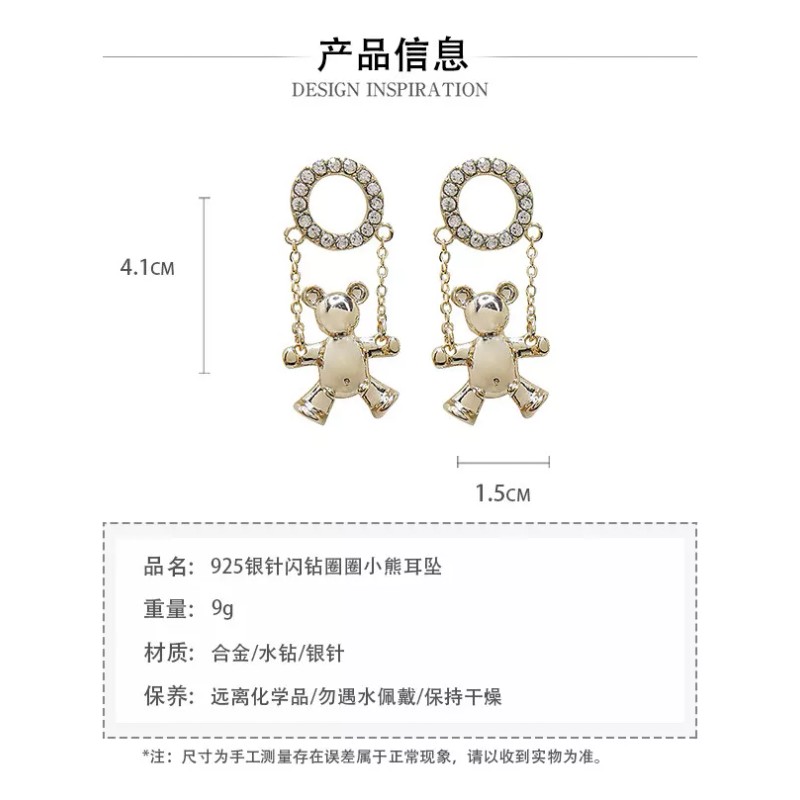 KH Aretes Osito Oso Mujer Moda Regalo Amiga Novia Mamá