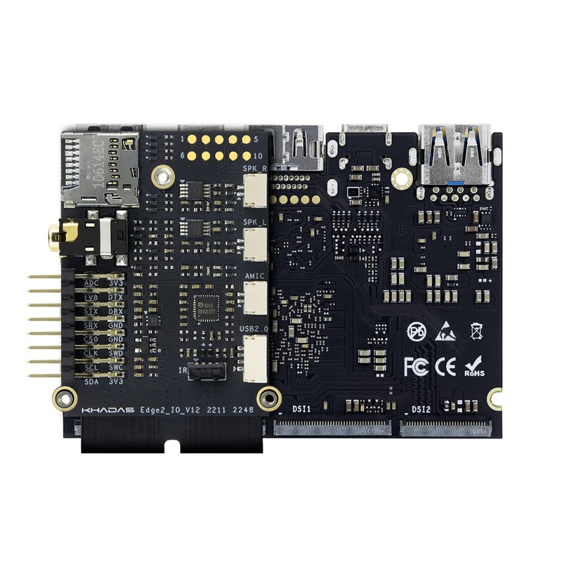 - Multi-function expansion board: Khadas Edge2 IO Module is a GPIO expansion board that expands the functionality of Edge2 by connecting to the FPC connector at the bottom of Edge2. It integrates UHS-I SD card reader, dual-channel infrared receiver, USB port, etc., providing you with more connection options.