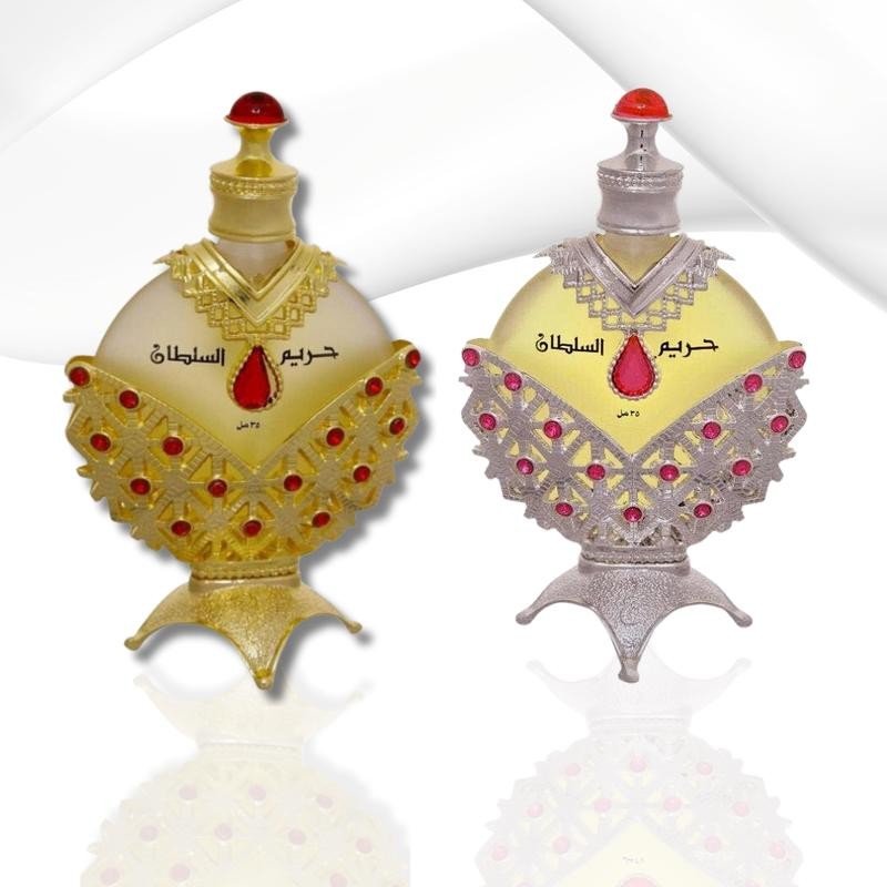 Khadlaj Hareem Al Sultan Gold & Hareem Al Sultan Silver Perfume Oil Pack of 2 - 35ML By Khadlaj - Viral Long lasting Women's Perfume Oil Fragrance Jasmine Vanilla Scented