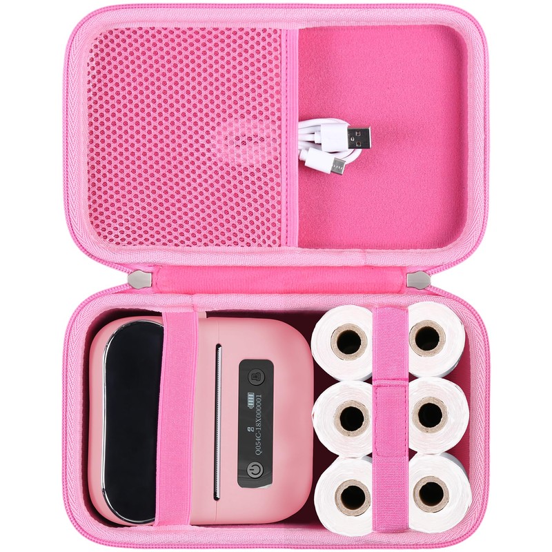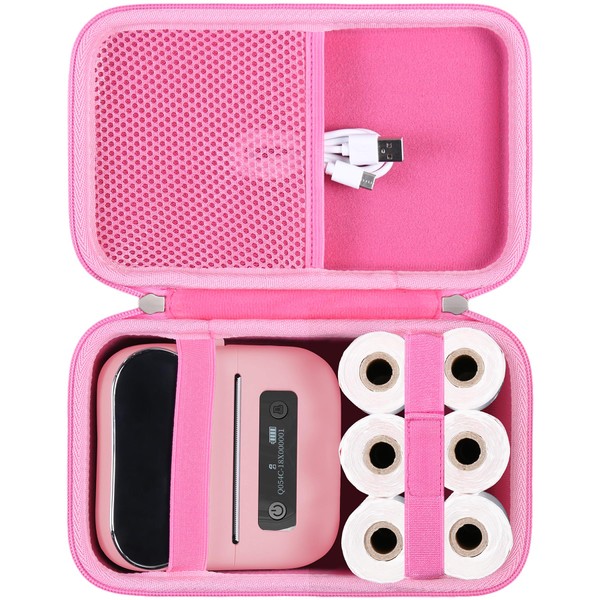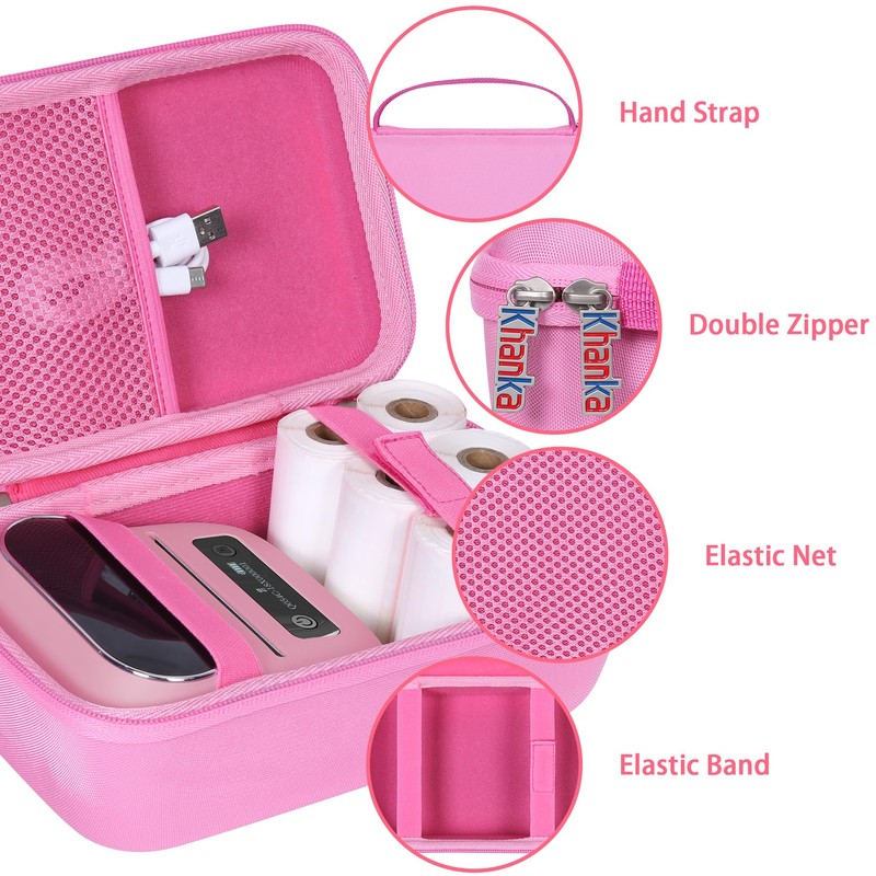 khanka Hard Case with Phomemo m221/M220/M110/m110s Label Maker - Portable Bluetooth Label Maker Carrying Storage Bag for Printer Labels, USB Cable and Accessories (Case Only) (Pink)