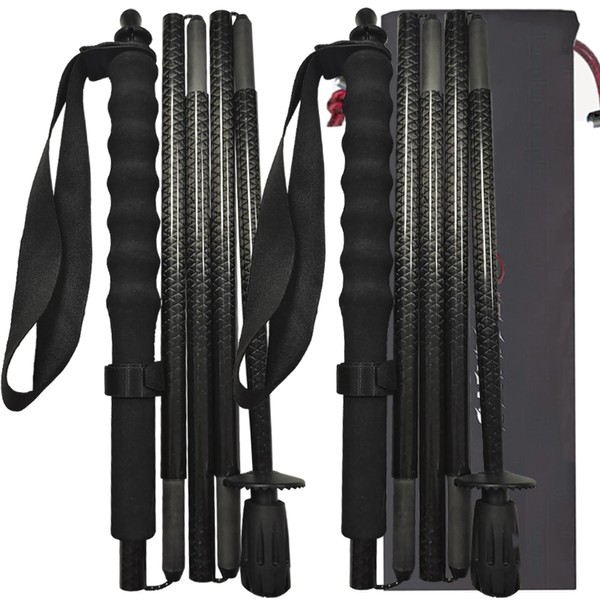 KHEALING トレッキングポール カーボン 折畳み 【超軽量100G】炭素繊維 登山 ポール 5節 2本セット 110/120/130cm ハイキングポール 滑り止め コンパクト 遠足 登山用品 徒歩 キャップ 吸湿発散性に 収納バッグ付 男女兼用 (130CM)