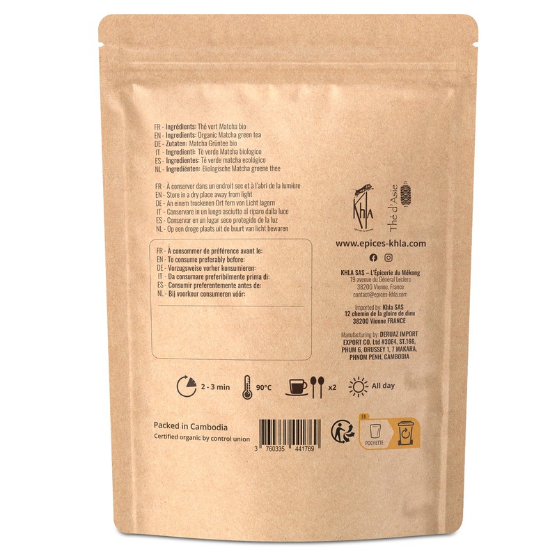 Khla - Matcha Tee Pulver Bio 80 g - Premium Ceremonial Matcha - Wiederverschließbarer Beutel - Grüner Tee - Mild & Pflanzlich - Asiatischer Tee - Kräutertee & Infusion - Kalt oder Heiß