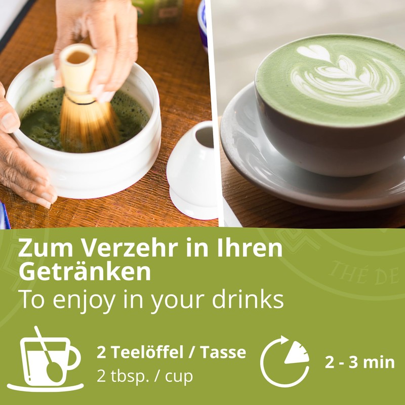 - ☕ FÜR GETRÄNKE & ZUBEREITUNGEN - Unser Matcha-Tee-Pulver ist perfekt für heiße und kalte Getränke. Schlagen Sie 1-2 Teelöffel Matcha mit 60 ml Wasser mit einem Chasen, bis Sie feinen Schaum erhalten, und fügen Sie dann Wasser oder Milch nach Geschmack hinzu. Dieser Matcha kann auch in Rezepten wie Smoothies und Gebäck verwendet werden, was ihn zu einer trendigen und vielseitigen Zutat in vielen Gerichten macht.