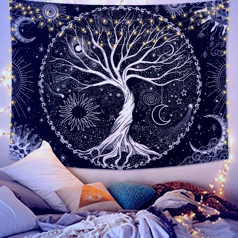 - ★【Size&Material】: Medium:W59" x L51"; Large: W79" x L58". Extra Large: W68"xL90". The Tree of Life tapestry is soft to touch, light-weight and durable, with screen printed design and its edges is hand-sewn finished.