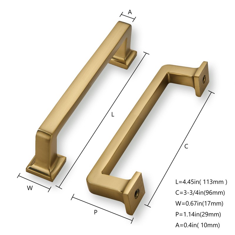 - Size: Hole center =3-3/4 inches (96mm); Length =4.45 inches (113mm); Projection =1-1/4 inches (32mm); Width =0.67 inches (17mm)