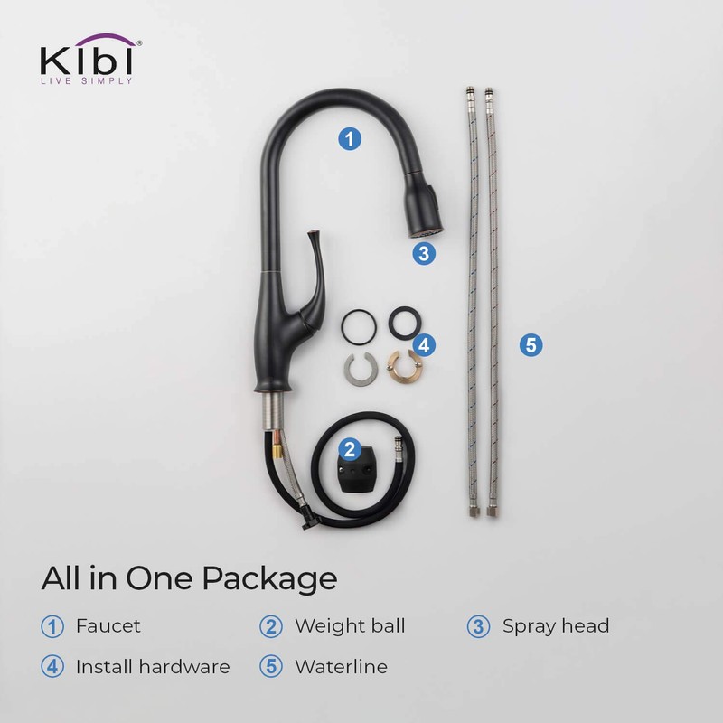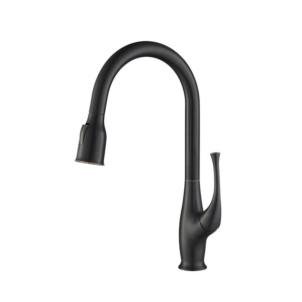 KIBI Cedar Single Handle Pull Down Faucet for Kitchen Sink | Solid Brass High Arc Faucet Spout | 360 Degree Swivel Kitchen Faucet with Pull Down Sprayer (Oil Rubbed Bronze) (KKF2010)