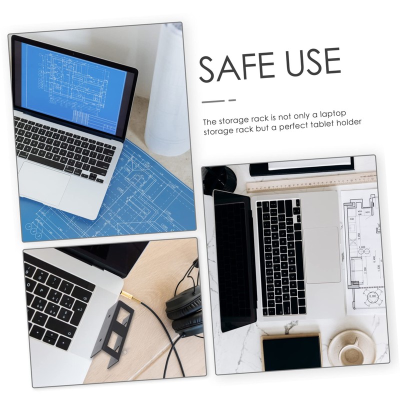 KICHOUSE 1set Laptop Support and Tablet Storage Holder Desk Organizer for Use Black Compact Design for Tidy Workspace