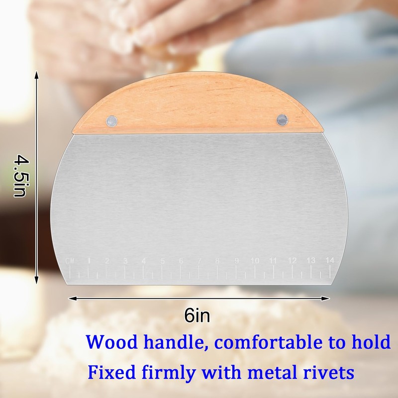 Kichwit 304 Stainless Steel Grill Scraper with Wood Handle, Pizza Dough Cutter, Multi-Purpose, 1 Pack