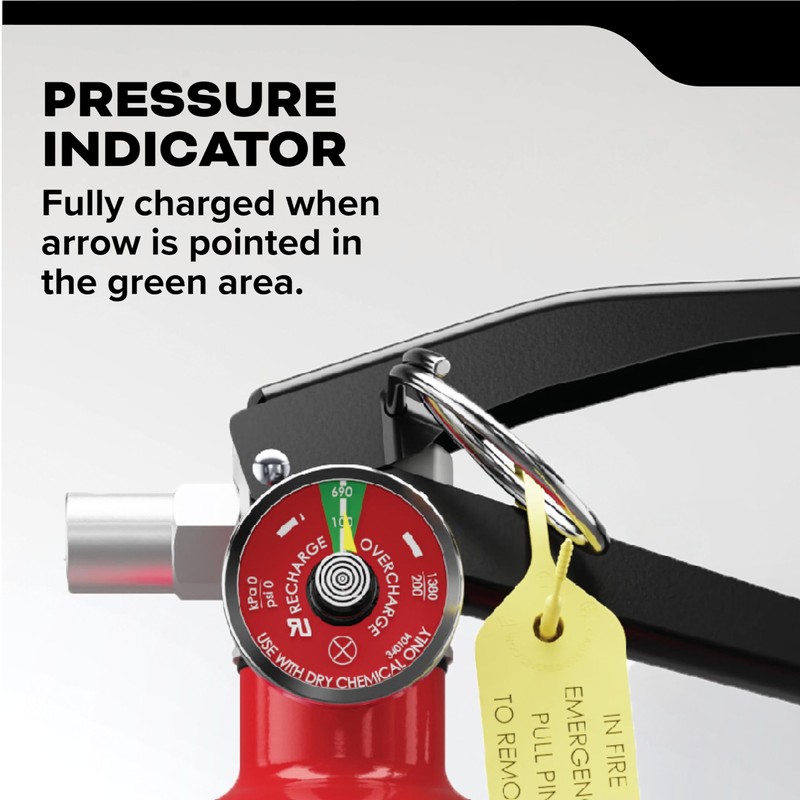 • Easy-to-Read Pressure Gauge: If arrow is in the green it’s charged