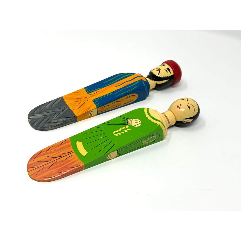 Kiddos and More Hand Painted Custom-Designed Wooden Door Stops, Solid Wood, Kashmiri Man Woman, Traditional Dress, Non-Toxic Pet and Child-Safe – 2 doorstops per Order, Comes in Man/Woman Pair.