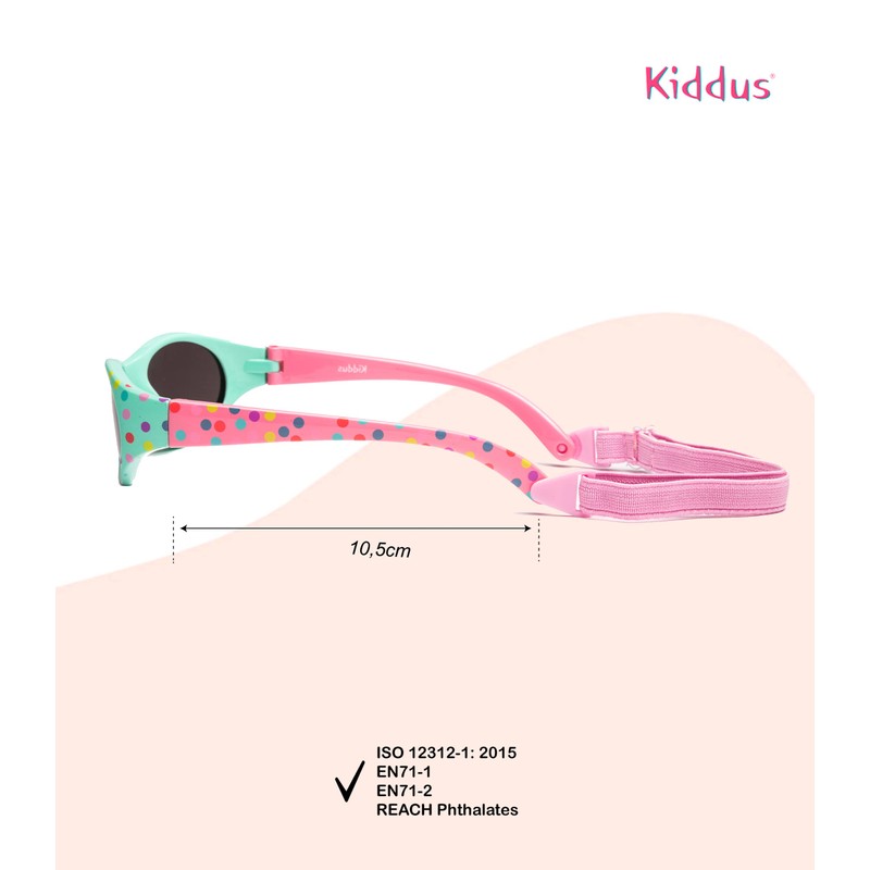 Kiddus Sunglasses for Girl Boy. From 2 years. UV Protection UV400. Made of Rubber. BPA Free. Adjustable and Detachable Band