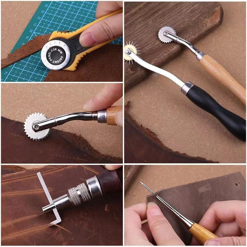 • 【High-quality Materials】 All our leather craft tools are made of high-quality materials, leather printing tools, diamond cutting tools are all made of high-quality carbon steel as materials, wooden structural parts are made of real logs, leather tool boxes have Hard and wear-resistant, everything is the best material, so they can serve your DIY production for a long time.
