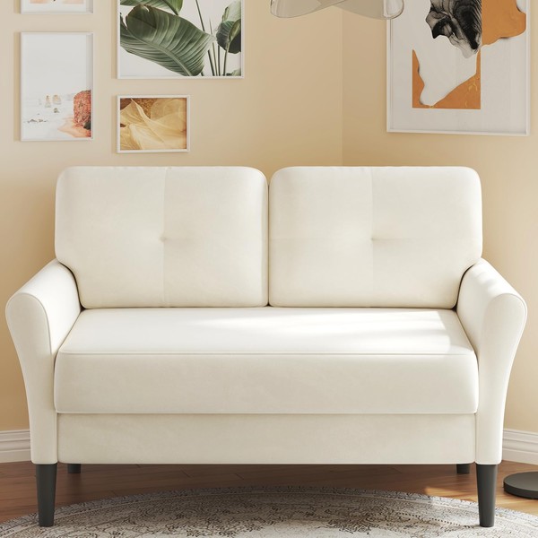 Kidirect 48" Loveseat Sofa, Small Couch for Bedroom, Comfy Love Seat with 21in Extra Deep Seats, 2 Seats Sofa Couch for Small Spaces, Apartment, Tool-Free Setup Mini Couch, Beige White Velvet Couch