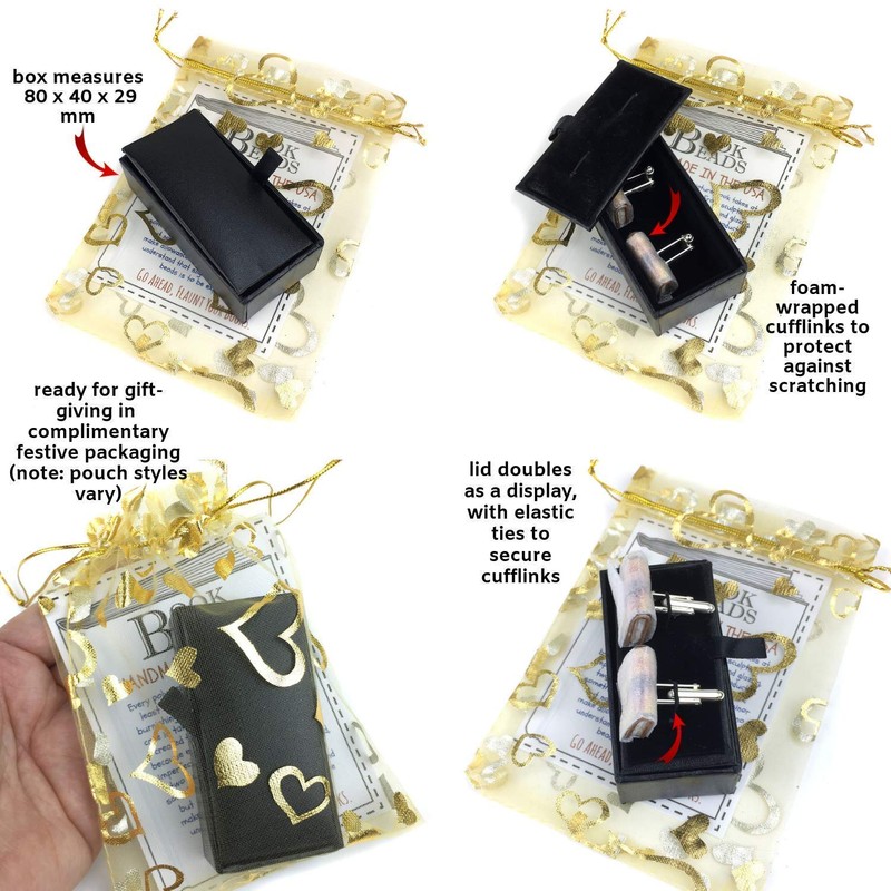 Don't let your cuffs bedevil you. Don these prized iconic miniatures of the novel and elevate your sleeves to literary consciousness and style. Go ahead: flaunt your books.