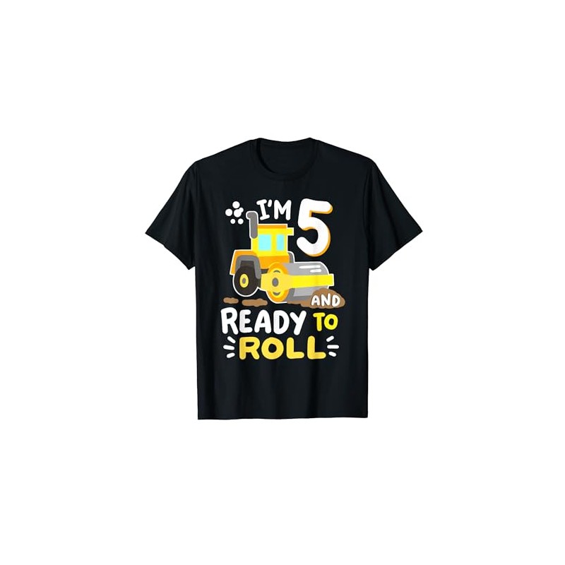 Kids 5th Construction Birthday Party Im 5 Ready to Roll Boys T-Shirt