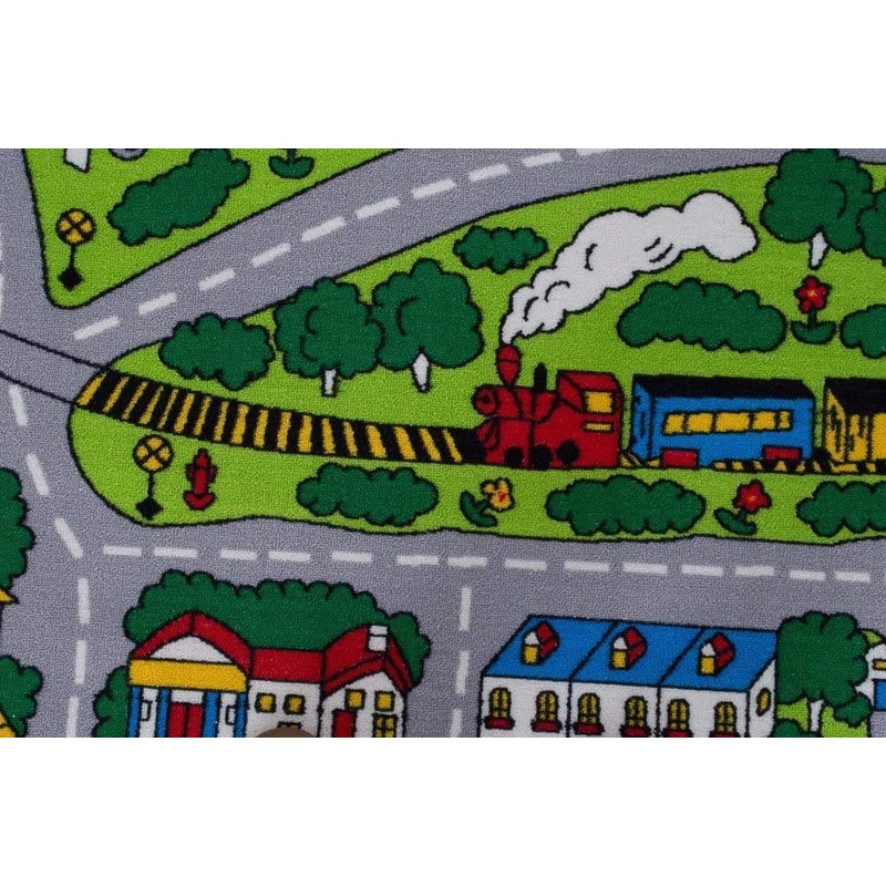 Kids/Baby Room/Daycare/Classroom/Playroom Area Rug City Roads Map Train Tracks Racing and Toys Cars Play Mat Learning Carpet (5’ X 8’)