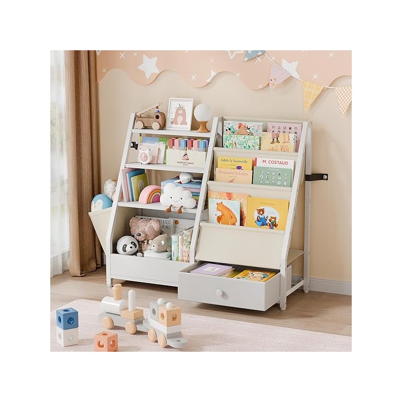 Kids Bookshelf and Toy Storage - Kids Book Shelf for Kids Rooms, Toddler Bookshelf Baby Bookcase for Nursery, Montessori Toy Organizer, White