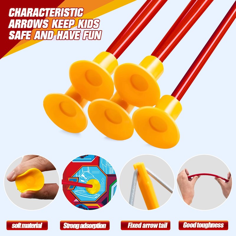 - PREMIUM QUALITY MATERIAL: The archery toys set is made of high quality ABS material, sturdy and durable, not easy to break.12 powerful suction cup arrows are made of high quality elastic material, which can be adsorbed on smooth surfaces and targets. For kids bow and arrow set 10-12 year olds.