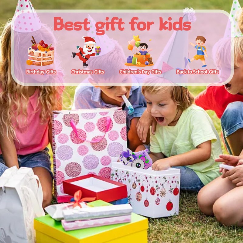 - Best Christmas Birthday Festival Gift for Kids:Unicorn kids Camera Toy comes in a beautiful gift box,which is a great choose as a Christmas gift birthday gift holiday gift for your children during age from 3-8 years; Environment-friendly materials, non-toxic,It supports selfie, video mode and 3 puzzle games, perfect mini video camera for kids