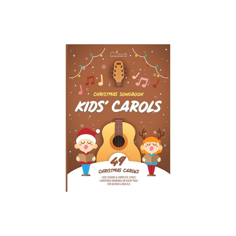 KIDS’ CAROLS SONGBOOK WITH EASY CHORDS: 49 traditional songs with chords for guitar and ukulele, each carol on a single page with Christmas illustrations!