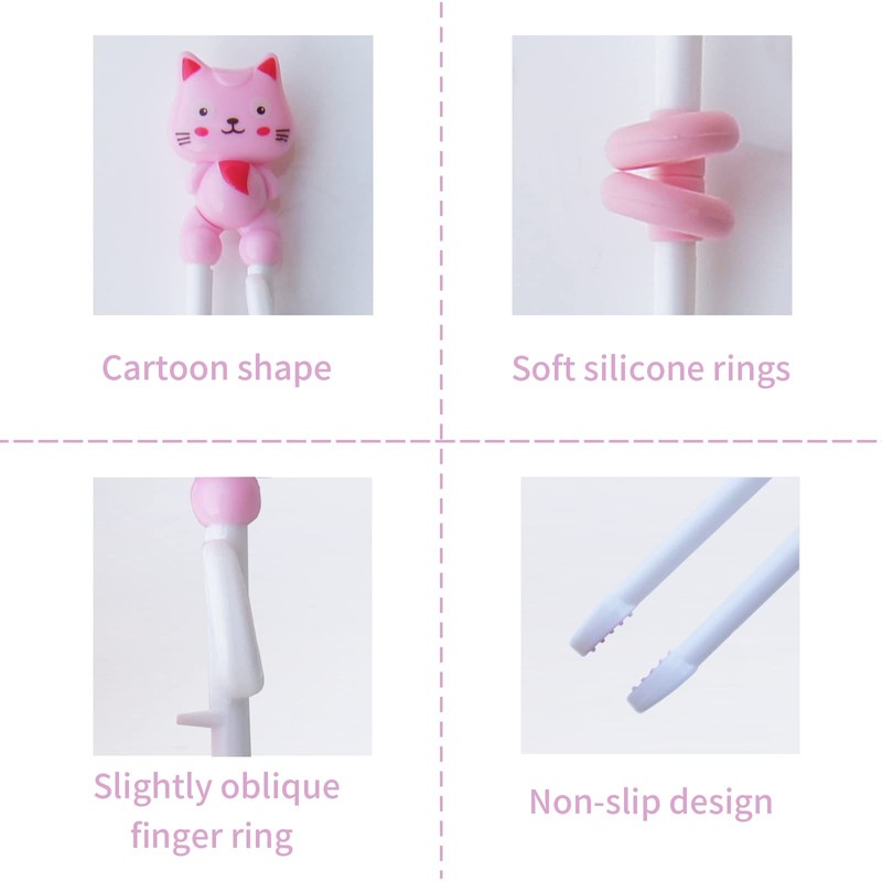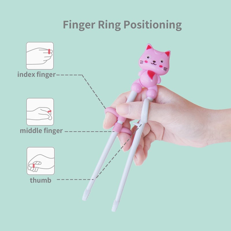 - 【Easy to Use】In the first step, put your thumb into the fixed ring, in the second step, put your middle and index fingers into the silicone ring, and in the third step, use the chopsticks by using the strength of your fingers.