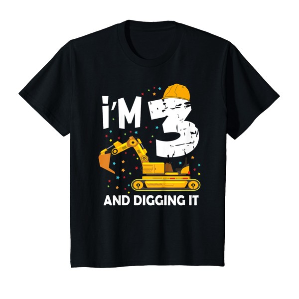 Kids Construction Truck 3rd Birthday I'm 3 and Digging it T-Shirt
