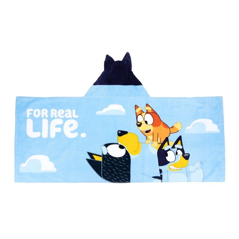 - DESIGN: Kids can become in this cozy hooded towel wrap. The cool blue design incorporates a fun cape and hood complete with a design.