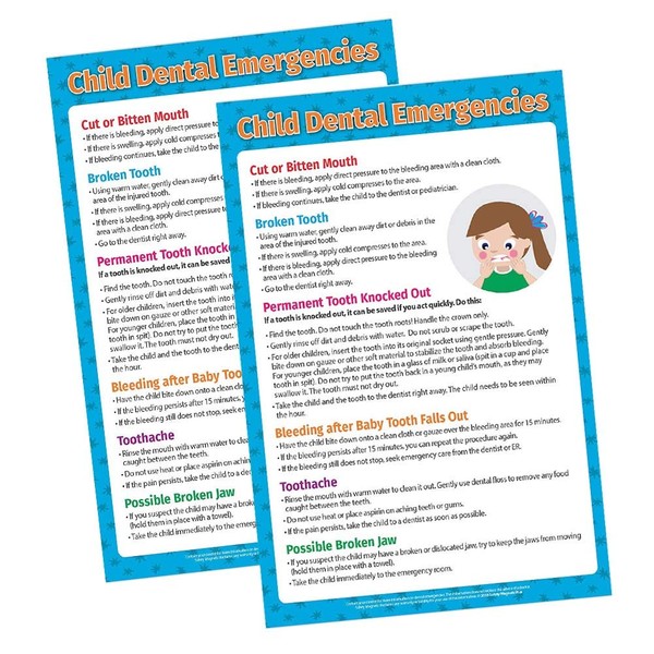 Kids Dental Emergencies Poster (2 Pack) - 12 x 18 in. - LAMINATED