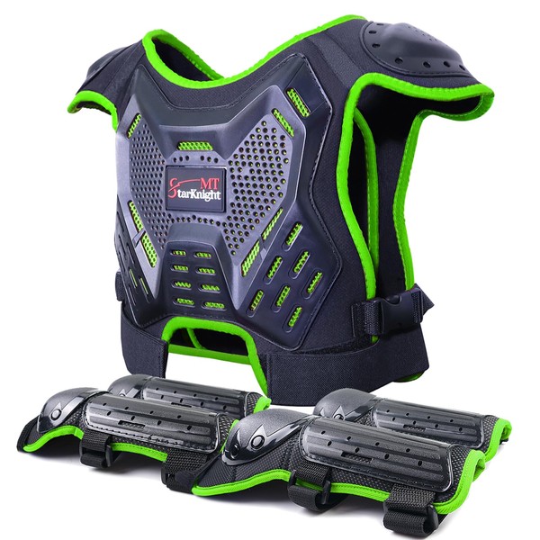 Kids Dirt Bike Gear - StarknightMT Youth Motorcycle Riding Protective Gear ATV Chest Protector Motocross Armor Suit for Boys Girls Mountain Biking Cycling, Light Green