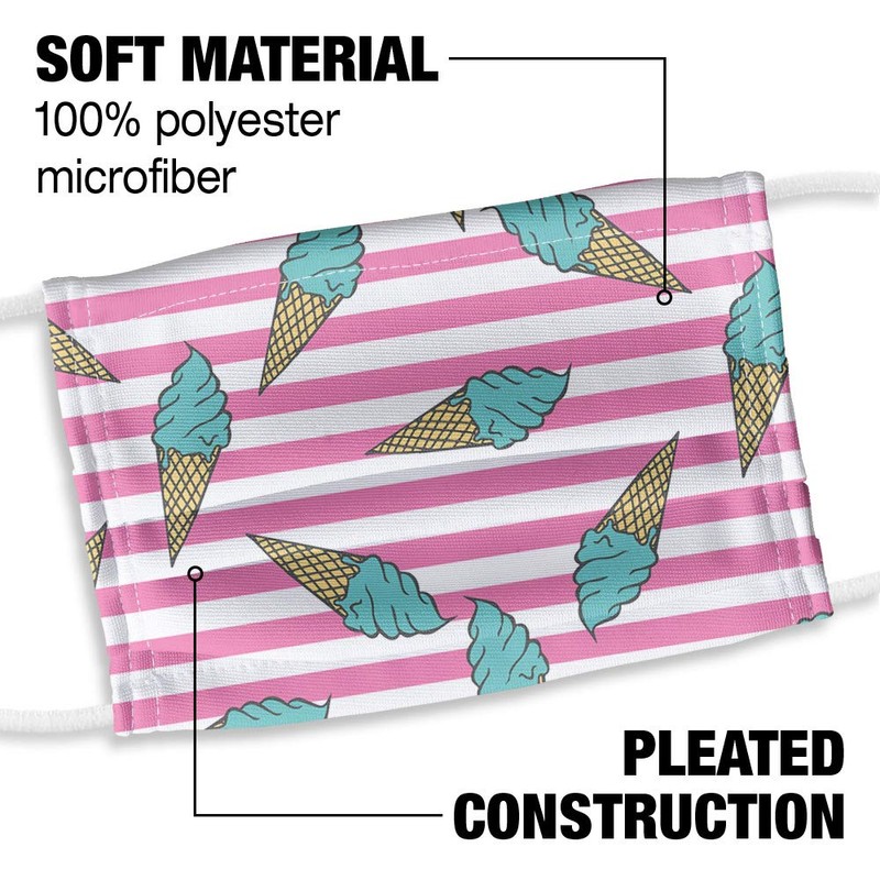 - KIDS ICE CREAM CONES AND STRIPES PATTERN FACE MASK - Our 100% polyester mask is made with 1 layer that is printed with your favorite design.