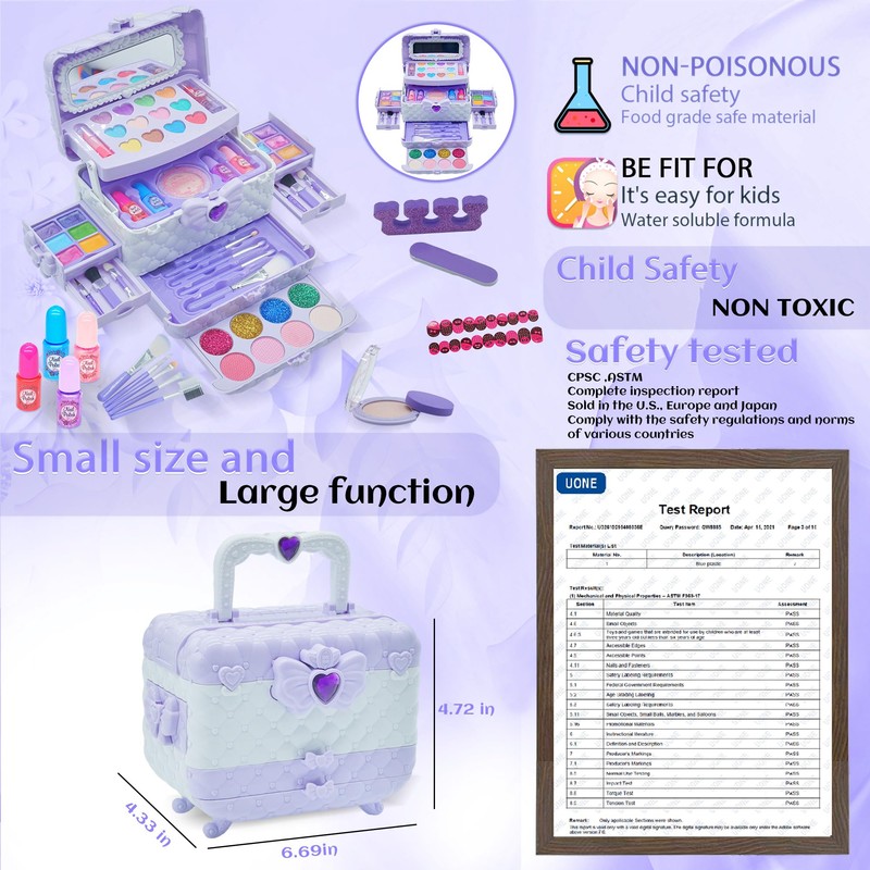 - 🍬【Using at Ease, Having Fun】Are you looking for a safe and environmentally-friendly kids makeup kit for your child to play with? Kids makeup kit for girl our brand have no preservatives, hypoallergenic and compatible with the skin. As well as having passed the American toy safety test, and having been tested on body. So please rest assured to use them and enjoying the joy of makeup.