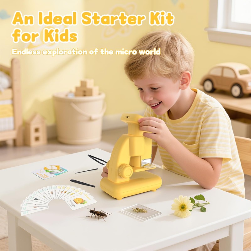 Kids Microscope for Teenage Girls - 120X-1200X Zoom Handheld Pocket Microscope with 2'' LCD Screen, Photo & Video STEM Educational Science Kit - Ideal Gift for Boys Girls Ages 6,7,8-12-Yellow