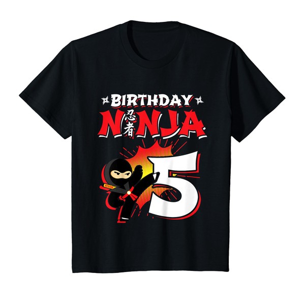 - Features Ninjutsu Japanese symbol & cartoon comic style ninja karate kick graphic that the 5 year old birthday ninja boy or girl will LOVE! Click the "Birthday Ninja - Kids Party Gifts & Apparel" brand link for ages 2-9 & Dad & Mom of the birthday ninja!