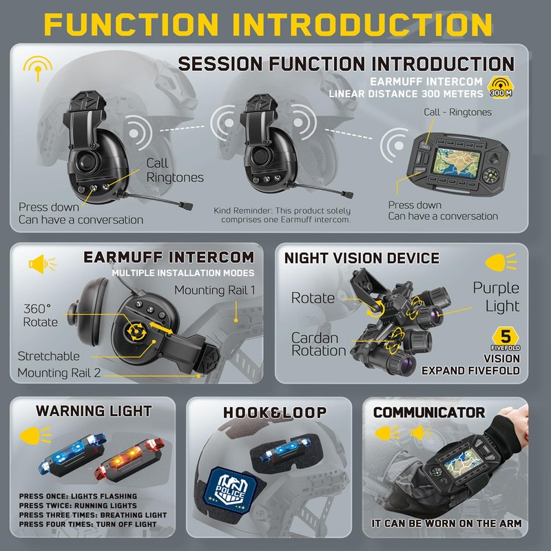 - Multi-functional Integrated Design: This kids' tactical helmet set combines multiple functions. It is equipped with high definition binoculars to satisfy children's curiosity for exploration and observation. The intercom headset facilitates communication and cooperation with little friends during games, allowing children to experience the real fun of tactical interaction.