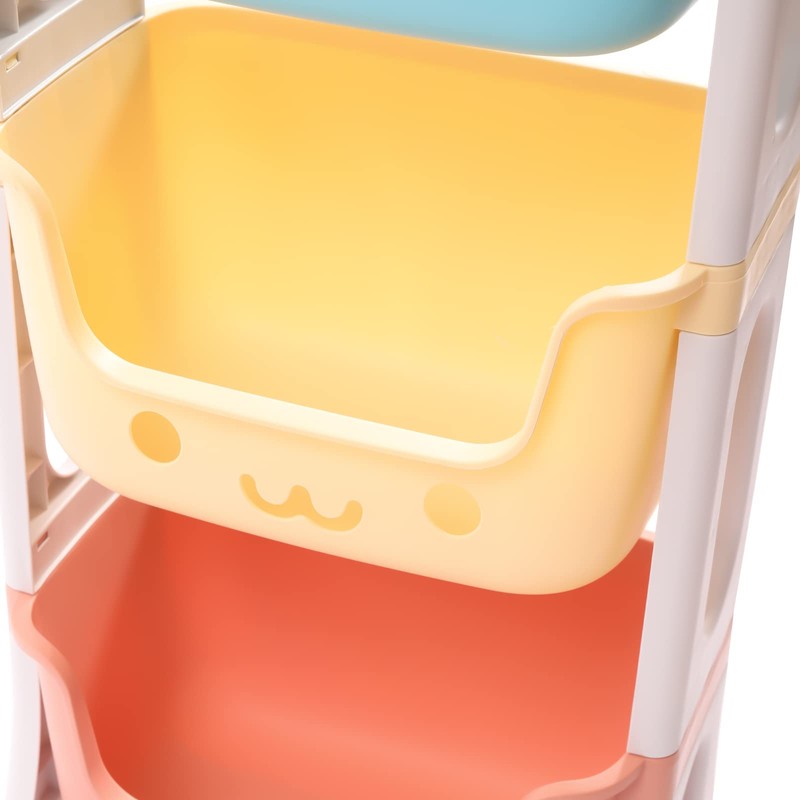 Kids Toy Box Storage Organizer 3-Tier Utility Rolling Cart with Universal Wheels Cute Smiley Design Doll Toys Snacks Bins Rack Shelf for Children's Rooms, Living Rooms