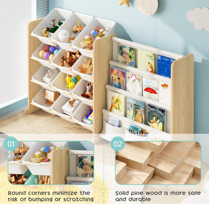 EXPERLAM Kids Toy Storage Organizer - Toy Organizer with Bookshelf, 12 Bin and 4 Shelf Storage, Playroom, Nursery, Kids Room Organizer, Burlywood