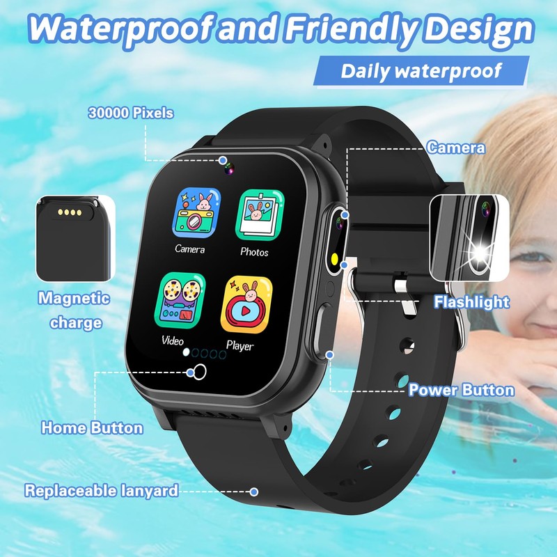 - 【HD Dual-Camera & Video】Our kid smart watch has been upgraded to dual-lens and also has amazing HD pixels. Children can take photos and record videos, capture record every wonderful moment in their lives. With pop big head sticker shooting, children can take some hilarious photos with family or friends. The first step in training a child to be a photographer.