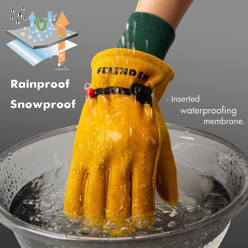 - 【Anti Slip】 - Suede deerskin leather surface of boys ski gloves adds the friction and helps grip the things firmly when skiing or skating.
