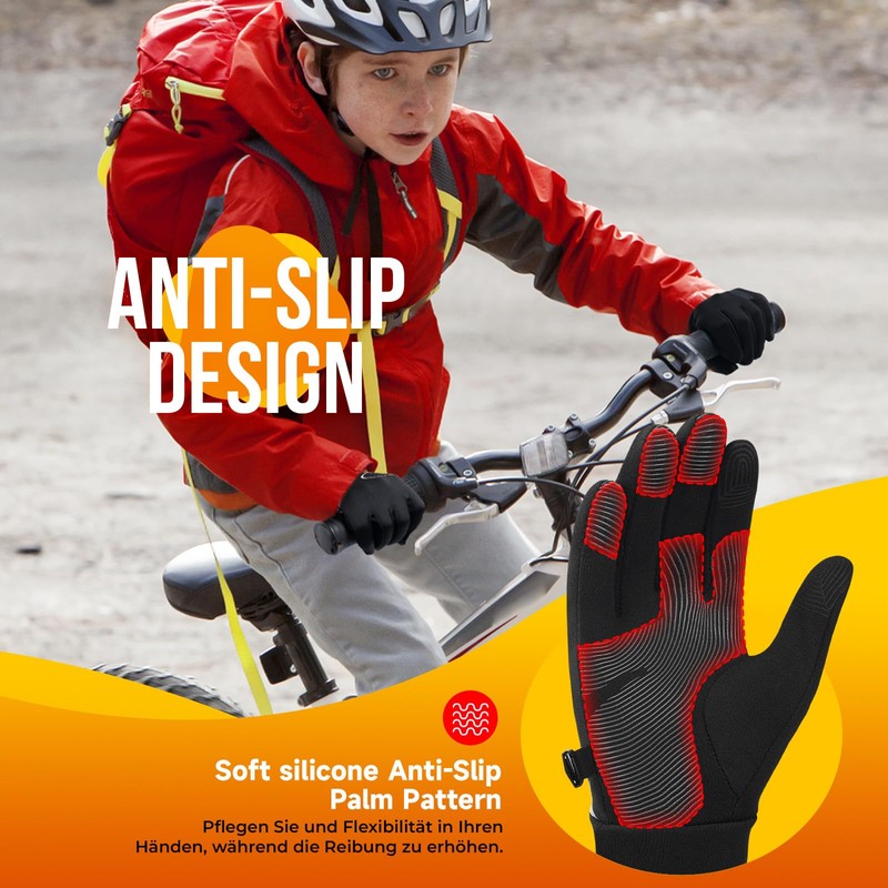 - Anti-slip cycling gloves: The warm gloves palm and fingers are cover anti-slip silicone which help your boy and girl hold thing easily or cycling/ridding more safety.Help them slipping while holding items like cycle handles,water bottles.