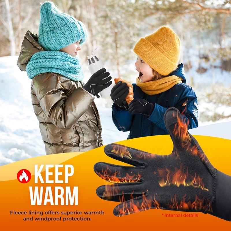 Kids Winter Gloves Waterproof, Lightweight Thermal Gloves with Touchscreen Anti-Slip, Soft Lining Running Warm Gloves Biking for Boy Girl Teens
