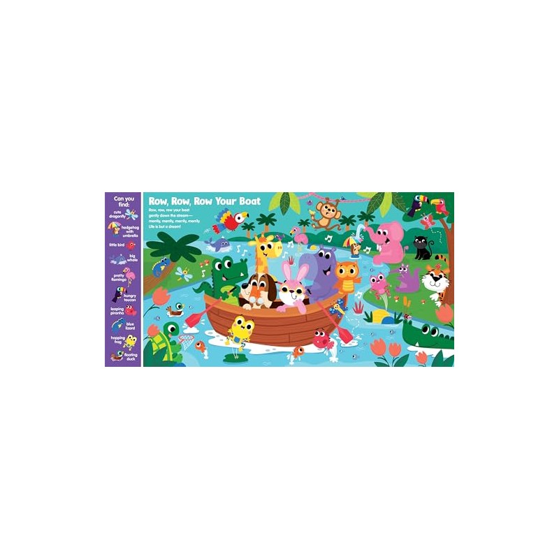 "Search, Find & Sing Along! This interactive sound book brings classic nursery rhymes to life with 6 delightful songs and engaging search-and-find challenges. Sing, explore, and play for hours of fun and learning!Encourages Early Learning & Development: Searching for hidden objects in vibrant nursery rhyme scenes builds focus, memory, and cognitive skills while music helps enhance language development and rhythm awarenessInteractive Musical Fun for Toddlers: Press the easy-to-use sound buttons to hear nursery rhymes and sing along with the printed lyrics on each page! Perfect for developing fine motor skills and engaging young mindsPerfect Gift for Little Learners: A must-have gift for birthdays, Christmas, or any occasion! This sturdy, colorful board book is designed for tiny hands and provides a screen-free way to entertain and educateDurable & Easy to Use: Built for active toddlers, this book features replaceable batteries, strong board pages, and clear, high-quality sounds. Start the nursery rhyme adventure today!Sing, Search & Learn with Nursery Rhymes! This interactive sound book invites toddlers to explore classic nursery rhymes through music and fun hidden-object games. Press the buttons to hear beloved songs, search the pages for hidden pictures, and follow along with the lyrics for an engaging learning experience. Durable, toddler-friendly design ensures endless fun at home or on the go. A perfect gift to spark joy and early learning."