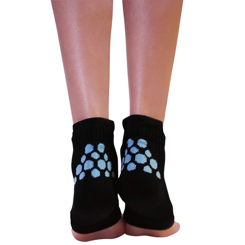 - Revolutionary gel layer inside heel of sock material. The sock feels like having a heel pad or heel cup safely and securely under your foot.