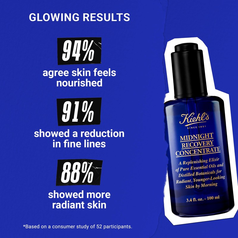 Kiehl's Midnight Recovery Concentrate Moisturizing Face Oil, Lightweight Facial Serum, Restores Skin Radiance Overnight, Reduces Fine Lines, Refines Skin Texture, 99.4% Naturally Derived - 3.4 fl oz