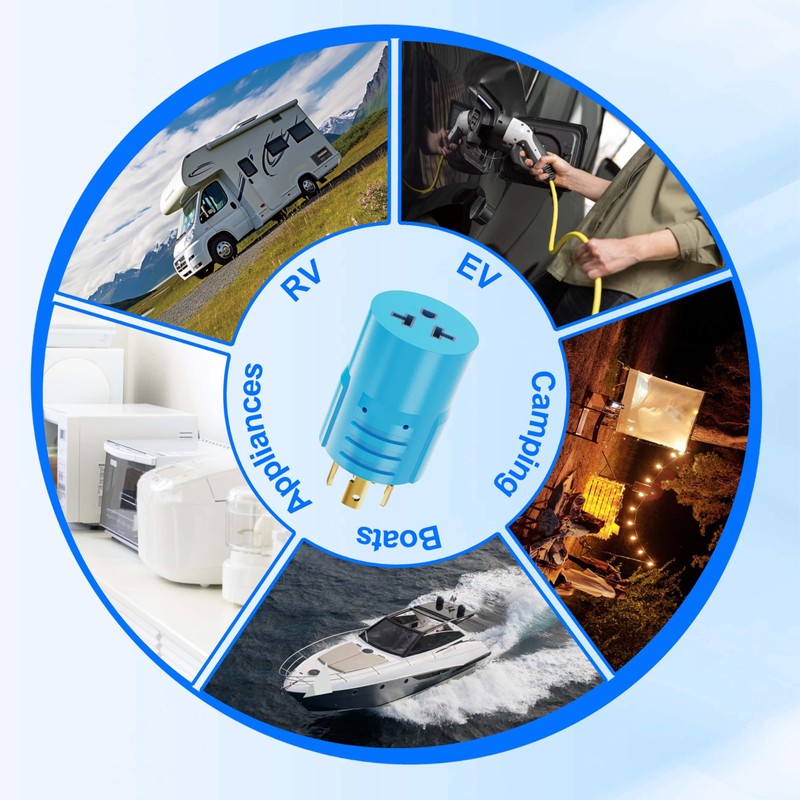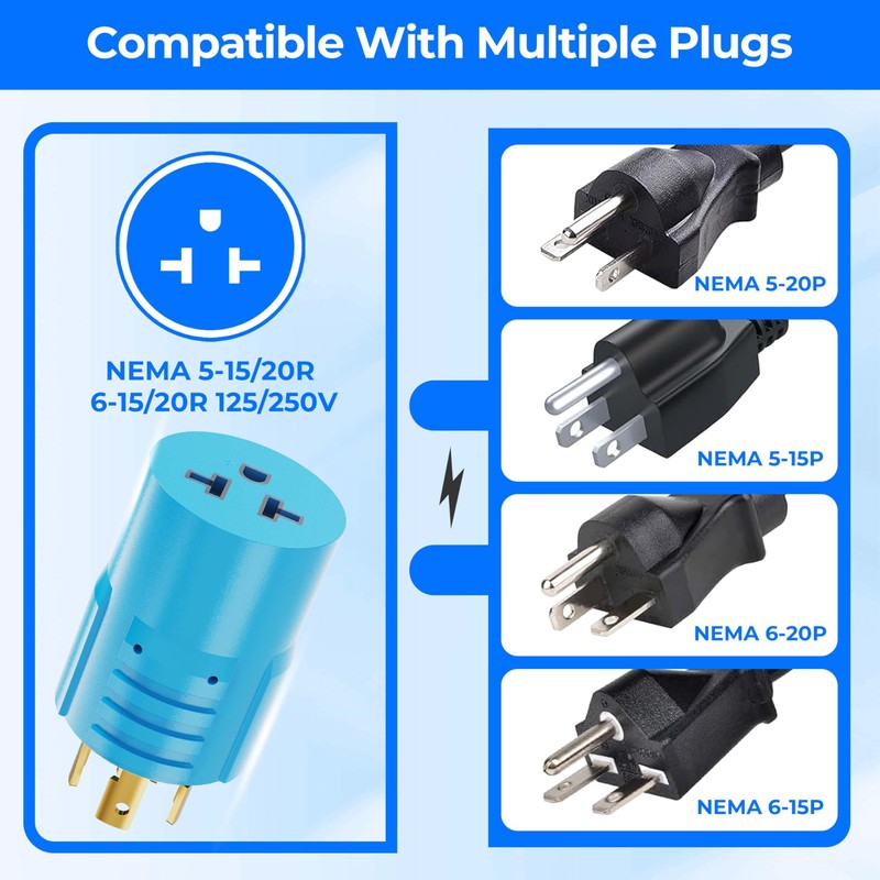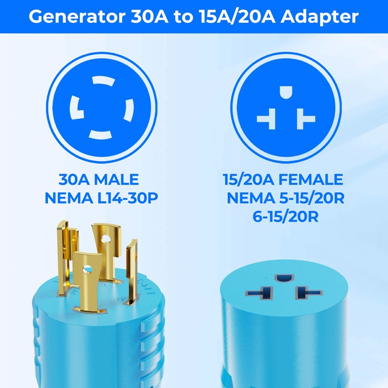 KIKIRV 30 Amp to 20 Amp 240V Generator Distribution Adapter NEMA L14-30P to 5-15/20R or 6-15/20R, 30A 4-Prong Locking Generator L14-30P to 5-15R 5-20R 6-15R 6-20R for EV Charging