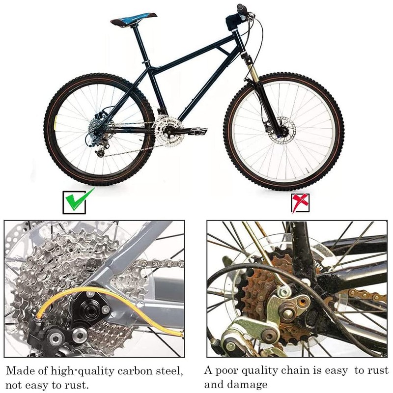 - 🚲 EASY TO INSTALL AND USE: The chain link is a magic buckle, which is easy to disassemble and clean, and it is equipped with 6 additional magic buckles, as well as bike link plier and chain hooks for installing the chain, making it easier to install.