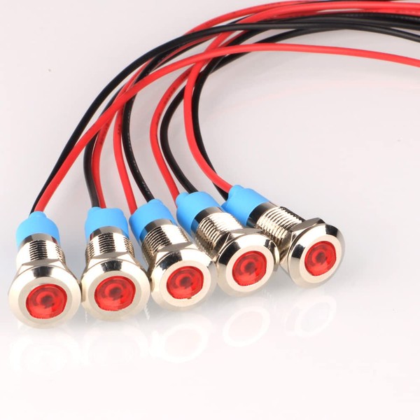 Kiligen 5pcs 8mm 110V-220VAC LED Waterproof Indicator Light Pilot Light Signal Indicator(Red)