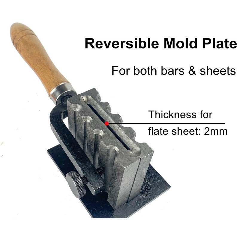 • REVERSIBLE: The Ingot Mold is reversible, so it can be used for making round / half round bar / wires and flat sheet. Molds in 2 convertible and detachable parts for easy extraction and cleaning