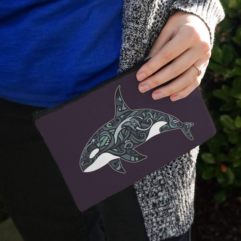 Killer Whale Orca with Waves Pencil Pen Organizer Zipper Pouch Case